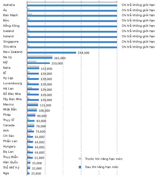 Sơ đồ : Diễn biến tăng hạn mức chi trả bảo hiểm tiền gửi trên thế giới