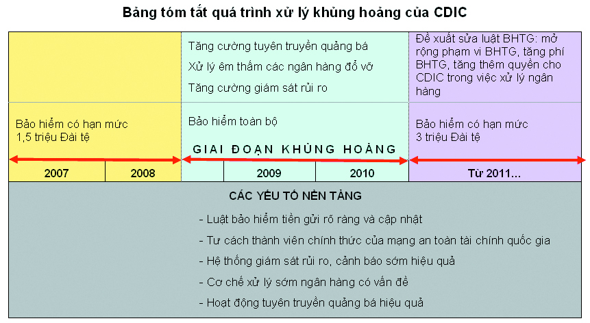 Bảng tóm tắt quá trình xử lý khủng hoảng của CDIC