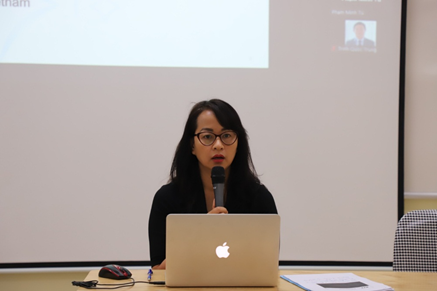 Bà Phan Thị Thanh Bình – Phó Tổng Giám đốc BHTGVN trình bày tham luận