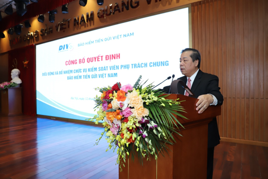 Tại buổi lễ, ông Đặng Duy Cường - Phó Vụ trưởng Vụ Tổ chức cán bộ đã công bố Quyết định số 35/QĐ-NHNN ngày 6/1/2023 của Thống đốc NHNN về việc điều động, bổ nhiệm ông Nguyễn Đình Hiển – Phó Vụ trưởng Vụ Thi đua khen thưởng NHNN giữ chức vụ Kiểm soát viên phụ trách chung BHTGVN. Thời hạn giữ chức vụ của ông Nguyễn Đình Hiển là 3 năm kể từ ngày ký quyết định.