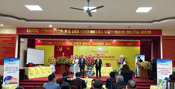 Đại diện Chi nhánh NHNN TP. Hà Nội tặng hoa chúc mừng đại hội
