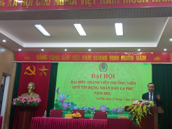 Ông Dư Quốc Bảo -Chủ tịch HĐQT QTDND La Phù phát biểu tại đại hội