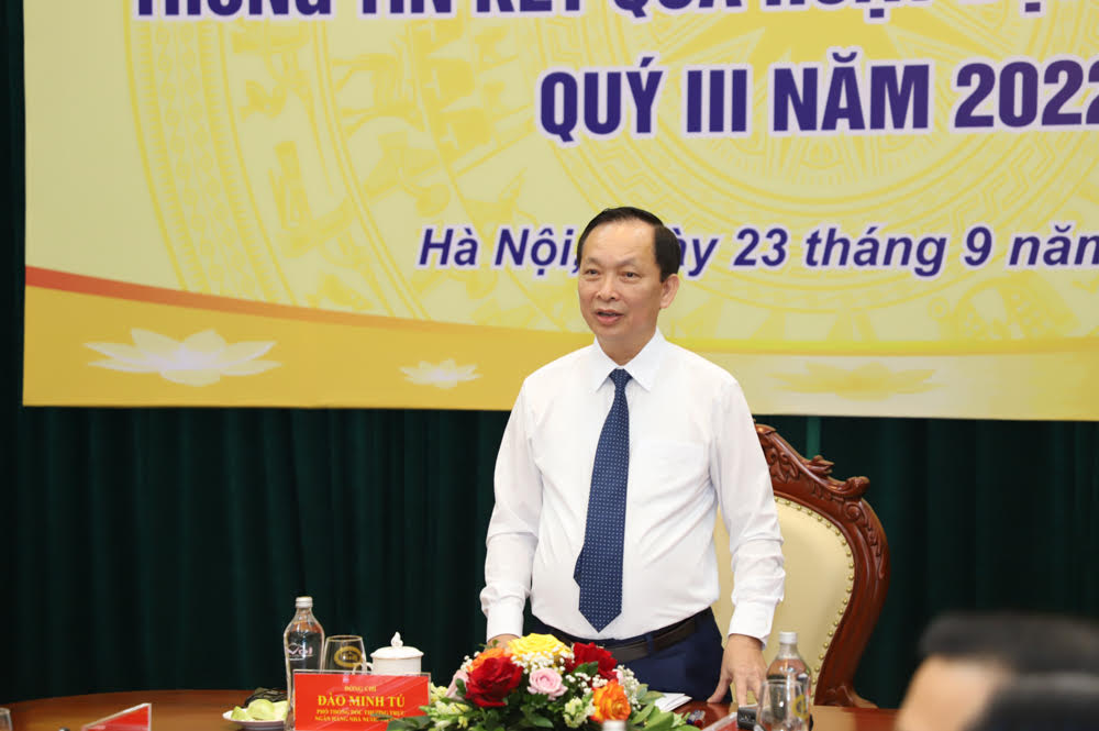 Phát biểu khai mạc buổi họp, Phó Thống đốc thường trực Đào Minh Tú đã khái quát tình hình tài chính ngân hàng quốc tế, các diễn biến kinh tế vĩ mô trong nước cũng như những ảnh hưởng tới chính sách tiền tệ và hoạt động ngân hàng. Theo Phó Thống đốc, trong 9 tháng đầu năm, nền kinh tế nói chung và hoạt động của ngành Ngân hàng nói riêng phải đối mặt với rất nhiều khó khăn. Trong đó, những diễn biến phức tạp của tình hình thế giới, áp lực lạm phát gia tăng tại nhiều quốc gia, cũng như việc Cục Dự trữ Liên bang Mỹ tăng lãi suất đã dẫn tới những diễn biến dây chuyền, đặc biệt là nền kinh tế Việt Nam đã mở cửa, hội nhập sâu rộng. Phó Thống đốc Đào Minh Tú khẳng định, dù tình hình chung là bất lợi, song Việt Nam vẫn có những điểm tích cực. Đó là sự quan tâm chỉ đạo quyết liệt của Đảng, Quốc hội, Chính phủ đối với chính sách tiền tệ, ngân hàng. Bên cạnh đó, sau 2 năm dịch COVID-19 hoành hành, nền kinh tế Việt Nam đã có sự phục hồi rất mạnh mẽ với tốc độ vượt dự báo. Đến nay, đồng tiền Việt Nam là một trong những đồng tiền mất giá ít nhất so với các nước trong khu vực và trên thế giới, chỉ khoảng gần 4%.
