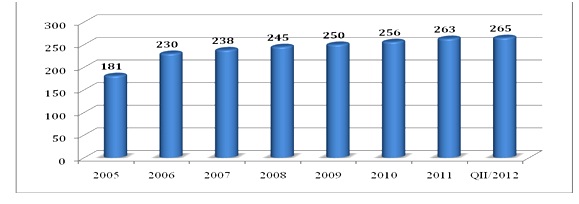 Bảng 1: Bảng kê tình hình thực hiện thời hạn nộp phí, bảng tính phí từ năm 2005 đến Quý II/2012