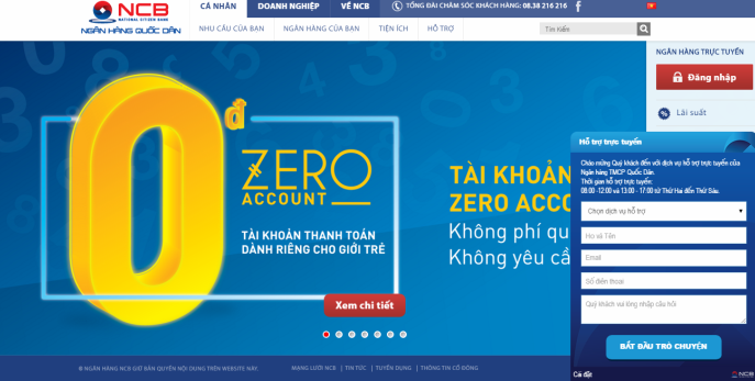 Từ ngày 5/11/2015, Ngân hàng TMCP Quốc Dân (NCB) chính thức ra mắt kênh “Live Chat” – hỗ trợ trực tuyến khách hàng trên website www.ncb-bank.vn, nhằm hỗ trợ và tương tác trực tiếp với khách hàng, giải đáp ngay lập tức mọi nhu cầu của khách hàng đối với sản phẩm dịch vụ của NCB.