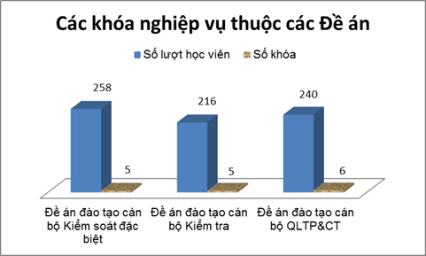 Mỗi đề án được bố trí từ 5 đến 6 khóa đào tạo, trong đó có các khóa cơ bản và nâng cao với trên 200 lượt học viên được đào tạo theo từng đề án. Học viên được trang bị từ kiến thức tổng quát về các quy định của pháp luật có liên quan đến nghiệp vụ mình đảm nhiệm, chia sẻ và thực hành các phương pháp, quy trình thực hiện, kỹ năng cần thiết để triển khai nhiệm vụ và hơn thế nữa là việc tiếp thu kinh nghiệm của các cá nhân, đơn vị trong nước và quốc tế. Tổng số nội dung dự kiến của 3 đề án nêu trên khoảng 160 nội dung với 34 chuyên đề lớn nhỏ khác nhau, trong đó riêng Chương trình đào tạo thuộc Đề án đào tạo dành cho các cán bộ tham gia kiểm soát đặc biệt bao gồm 56 nội dung thuộc 18 chuyên đề.
